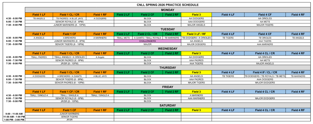 SPRING 2026 PRACTICE SCHEDULE
